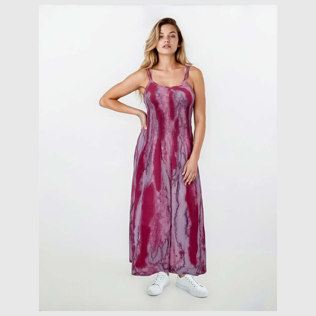The Marble Print Sleeveless Maxi Dress is a stylish and comfortable outfit designed for effortless elegance. Featuring a beautiful marble-inspired pattern in rich pink and purple tones, this dress offers a unique and artistic look. The sleeveless design and soft fabric provide all-day comfort, while the flowy maxi length adds a graceful touch to your appearance. Perfect for casual outings, vacations, brunch dates, or summer events, this dress pairs easily with sneakers or sandals for a chic, relaxed vibe. Its lightweight material and flattering fit make it a must-have addition to any modern wardrobe.